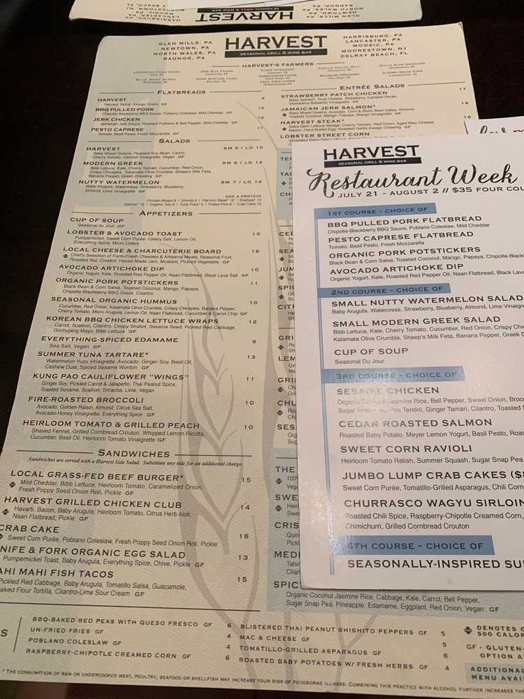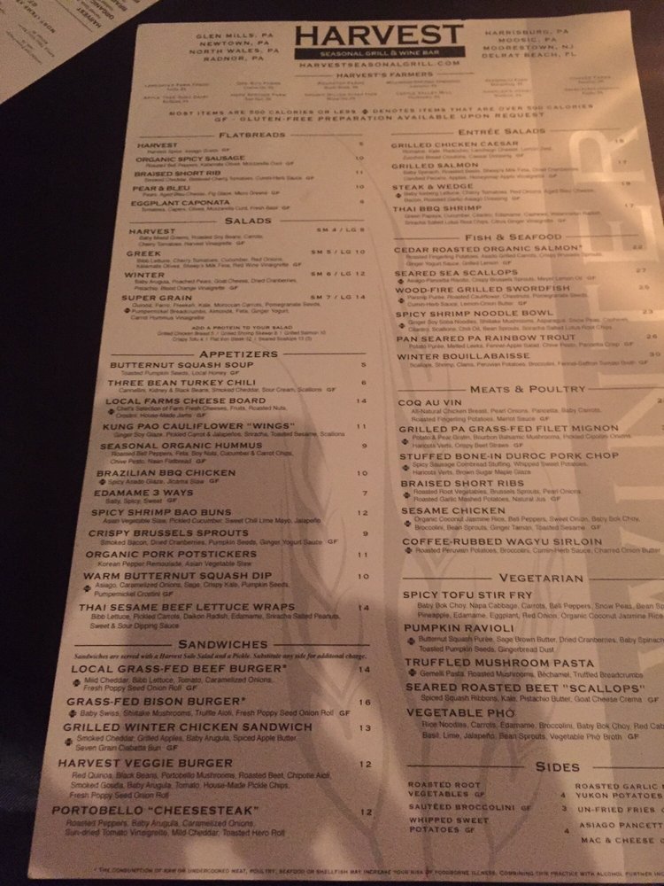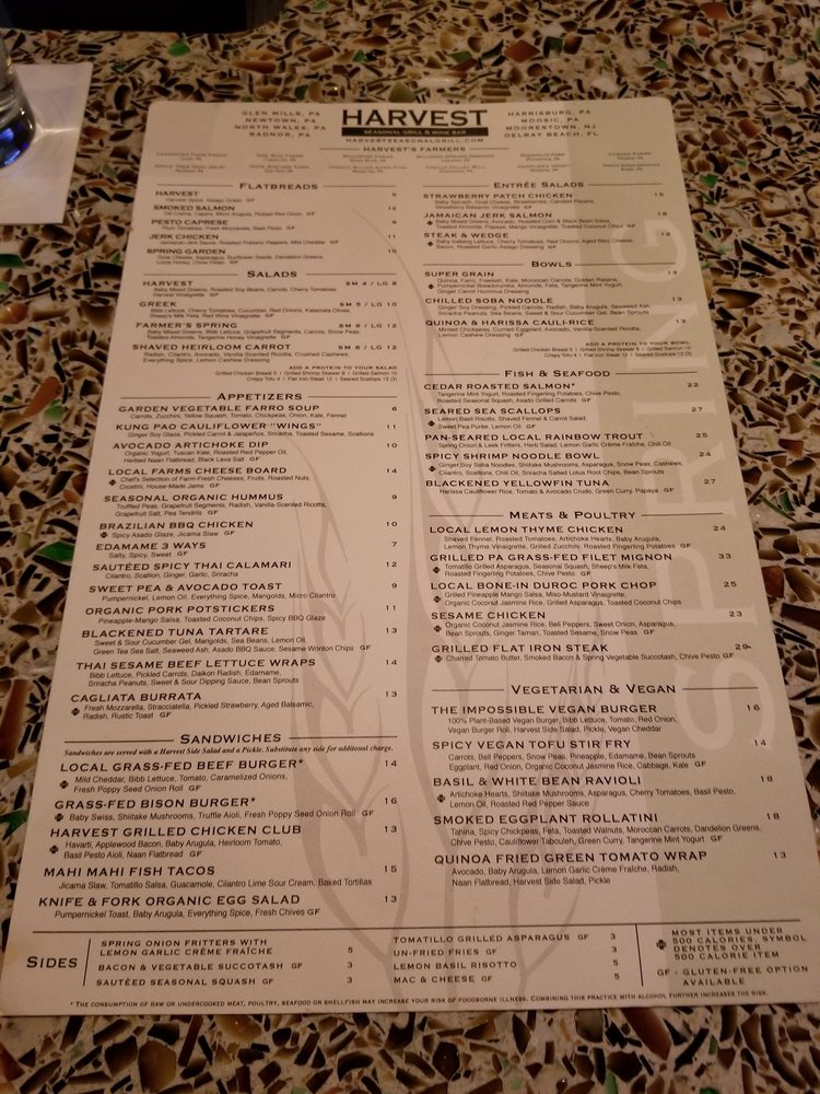 Harvest Seasonal Grill in North Wales is a new American restaurant with a focus on locally sourced, fresh food that rotates with the seasons. The menu offers a variety of nutritious options, including grilled chicken, salmon, steak, burgers, and vegetarian dishes like meatless chicken tenders and gluten-free pasta. Customers have praised the restaurant for its great service, nice seating, and vegan options. However, some have had mixed experiences with certain dishes being overpriced or underwhelming. The ambiance is described as classy with moderate noise levels, making it suitable for various occasions like lunch, dinner, or happy hour. Overall, Harvest Seasonal Grill provides a unique dining experience with a diverse range of menu items to cater to different dietary preferences.