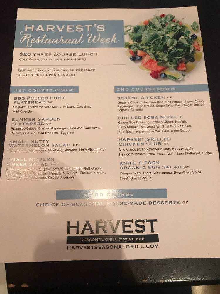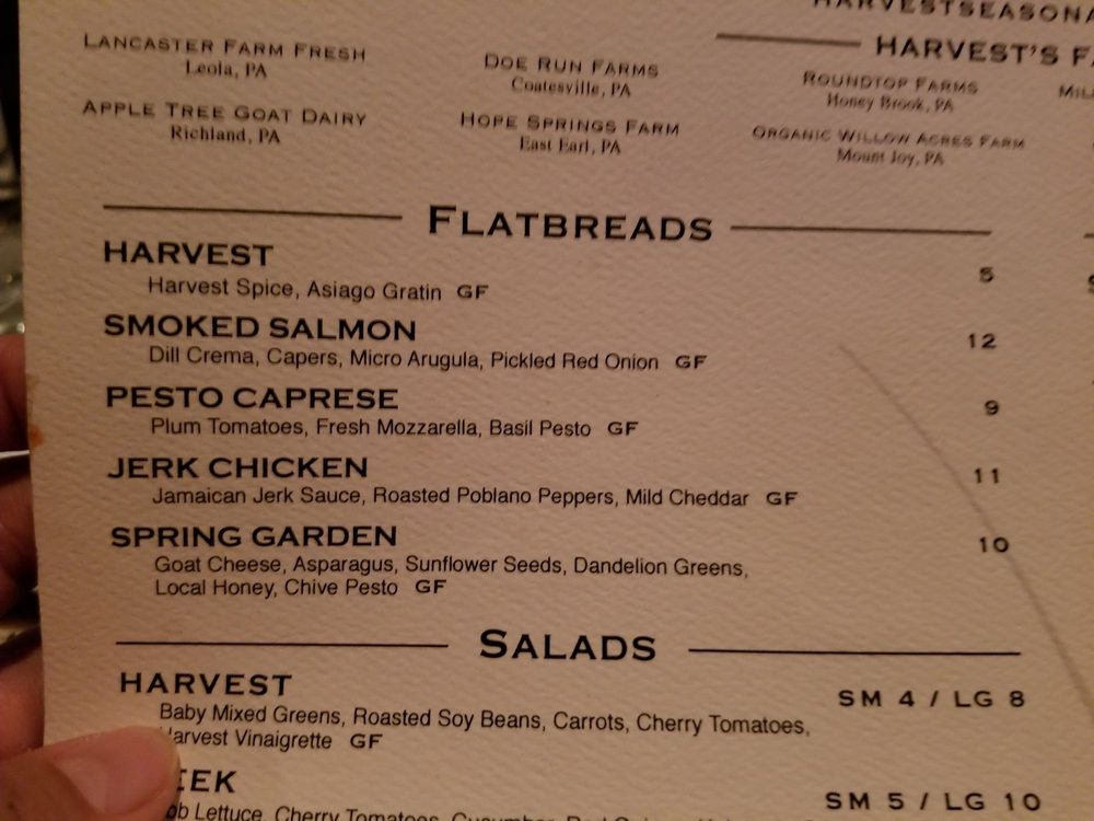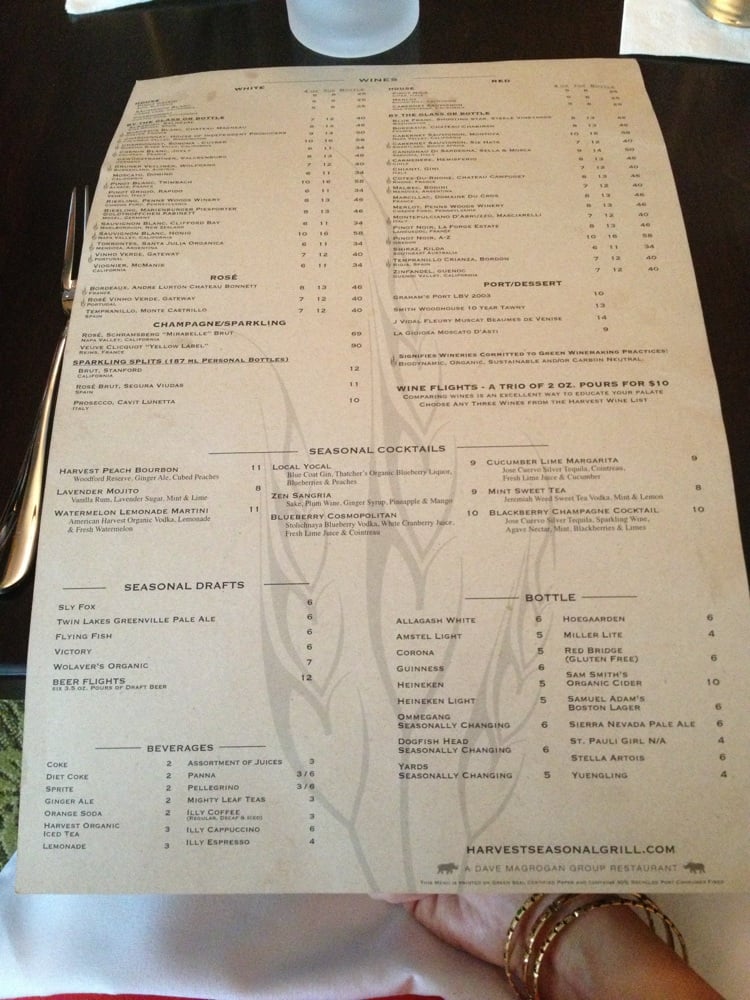 Harvest Seasonal Grill - North Wales Menu